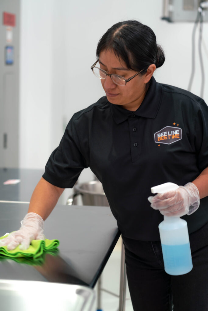 At Bee Line, we never subcontract, require extensive background and reference checks, and train everyone on high-touch points and target cleaning in our own on-site training room at our headquarters. We also have Safety and Compliance Managers overseeing each team for the security of every facility, and we host weekly and monthly meetings to check in with all staff.